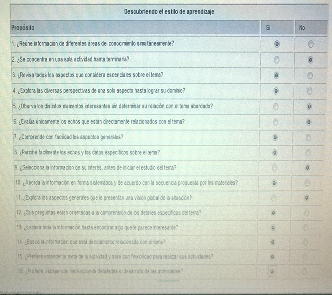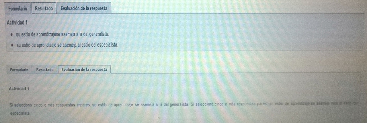 Si selecciono cinco o más respuestas impares su estilo de aprendizaje se asemeja a la del generalista, si selecciono cinco o más respuestas pares, su estilo se asemeja al del especialista.