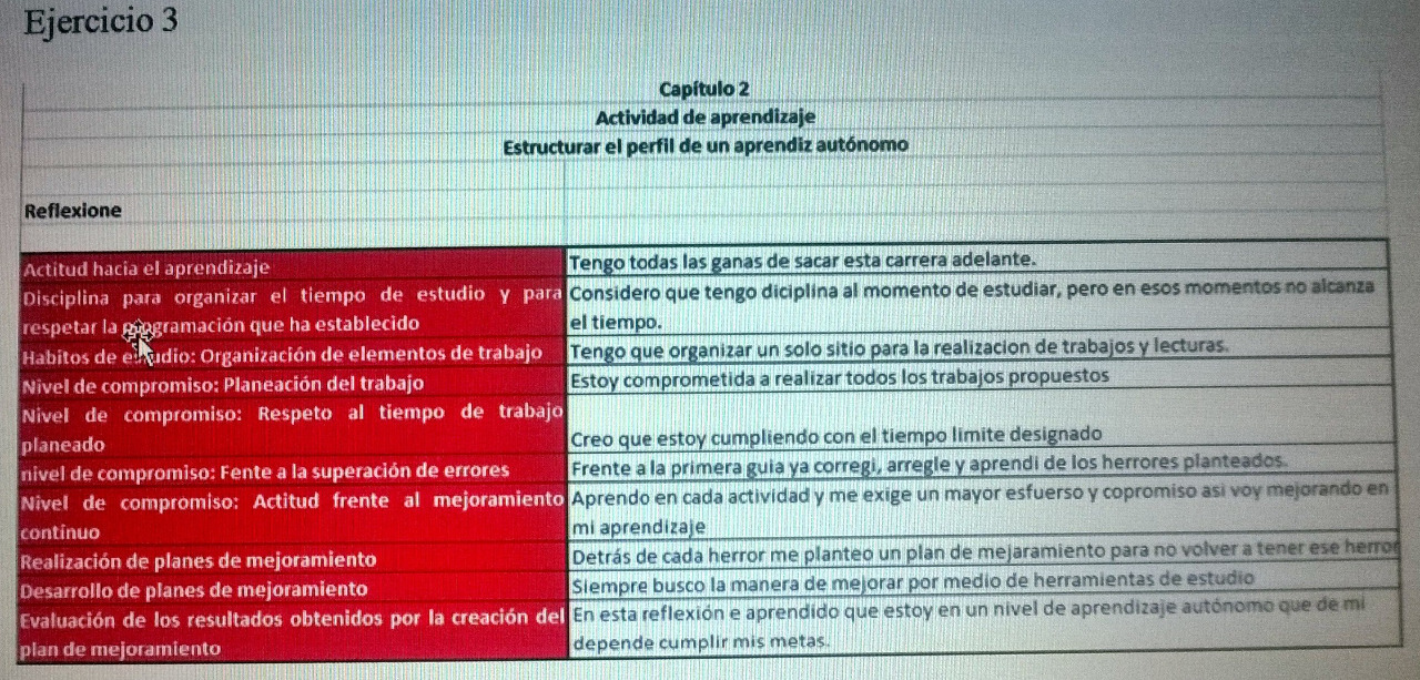 1.6 Desarrollo de la página 129 del libro Arguelles., y Nagles, N. (2010). Estrategias para promover procesos de aprendizaje autónomo (4a edición). Bogotá, Colombia.